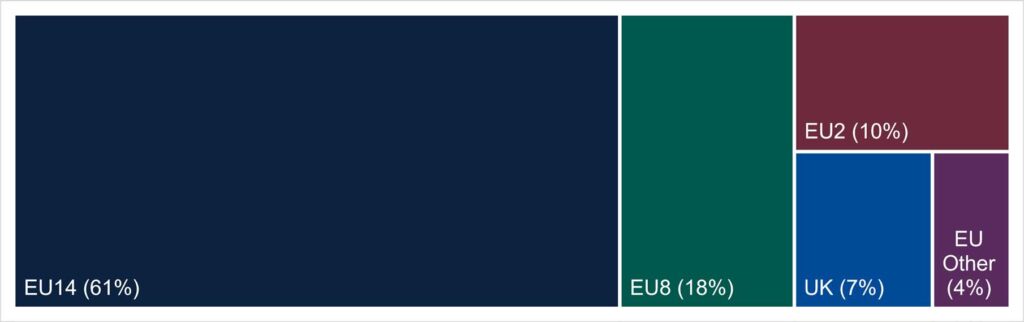 Finally, people that have complained to the IMA have been diverse. The IMA’s registered complainants represent 89% of EU member states (24/27). However, no citizens from EEA EFTA states (Norway, Iceland, Lichtenstein) have registered to date. Graph 4 (below) shows the relative proportions of registered citizens by EU country grouping.